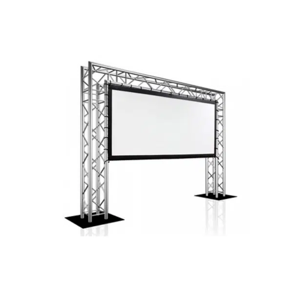 A big 150-inch theatre-style screen that conveniently installs to garage door frames, walls, trees, pole supports, and other applicable structures. Can be rigged upon Truss.